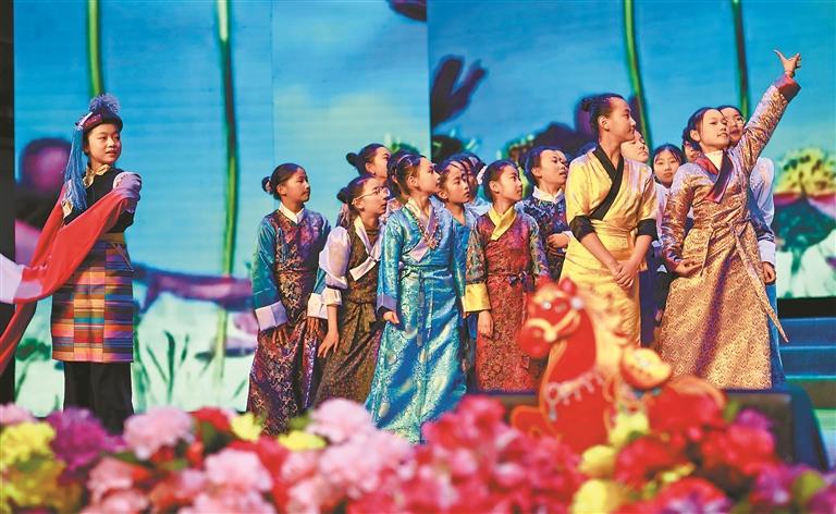 图为3月27日,拉萨市第一小学“铭记历史颂党恩,奋进新程展师风”庆祝“3·28”西藏百万农奴解放纪念日师生文艺晚会在自治区群艺馆上演。图为文艺晚会现场。本报记者 格桑伦珠 康洁白姆 晋巴次成 巴桑顿珠 摄影报道