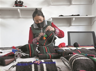 图为祥和苑社区妇女正在祥云格子铺妇女赋能工作室制作文创手工艺品。拉萨融媒记者 旦增拉珍摄