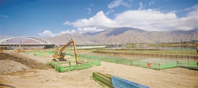 图为柳梧大桥B匝道建设项目现场。拉萨融媒记者 巴桑次仁摄