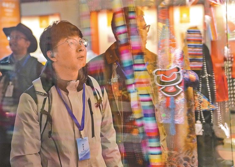图为4月17日,西藏全区博物馆馆长培训班的学员在西藏博物馆现场交流学习。新华社记者 晋美多吉 摄
