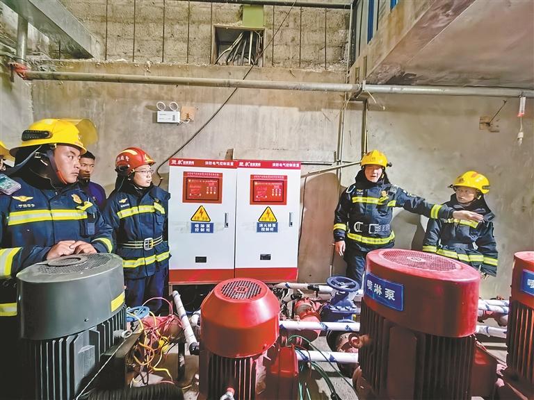 图为消防员在设备间学习掌握消防电气控制柜操作规范,明确喷淋、消火栓系统控制逻辑,确保关键时刻设备可靠运行。肖暄 摄