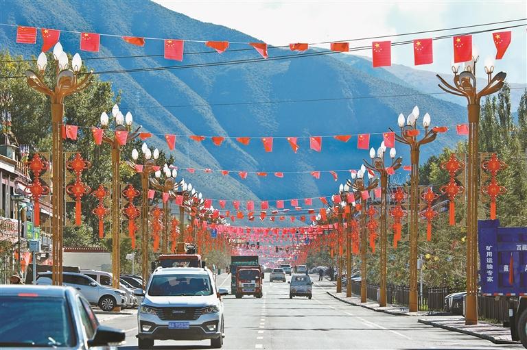 图为墨竹工卡县装饰一新的街道。 本报通讯员 洛克 本报记者 唐斌 摄