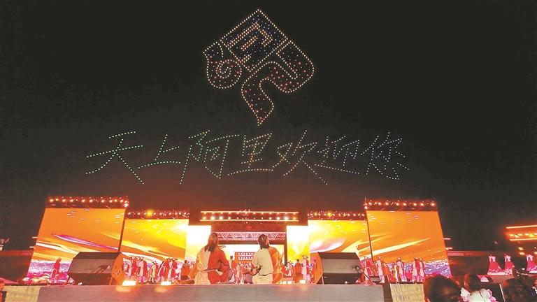 第九届象雄文化旅游节开幕式上的无人机表演。