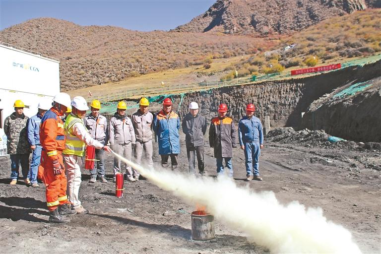 图为林芝市朗县消防救援大队消防员深入中广核能源朗县有限公司开展消防安全培训。 卓嘎 摄