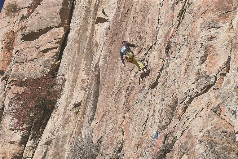 本报拉萨11月30日讯 11月29日,2025年西藏自治区攀岩自然岩壁公开赛在拉萨市夺底沟吉仓自然岩壁场地举行。