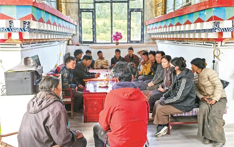 图为洛隆县马利镇布许村的“庭院议事屋”内,村干部与村民围坐商讨发展大计。本报记者 贡秋曲措 摄