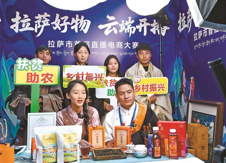 图为拉萨市首届直播电商大赛决赛现场,参赛选手在直播实战比拼。本报记者 旦增兰泽 卢文静 摄