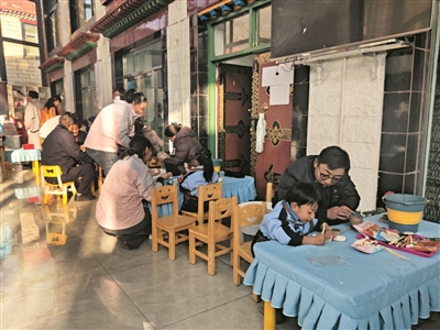 图为幼儿在体验非遗项目。拉萨融媒记者 余洋洋摄