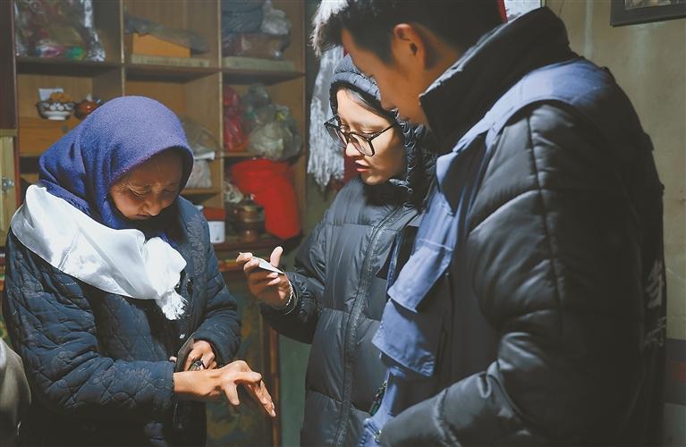 图为西藏星光社会工作服务中心工作人员在当雄县公塘乡巴嘎当村,入户走访帮扶辖区困境老人。