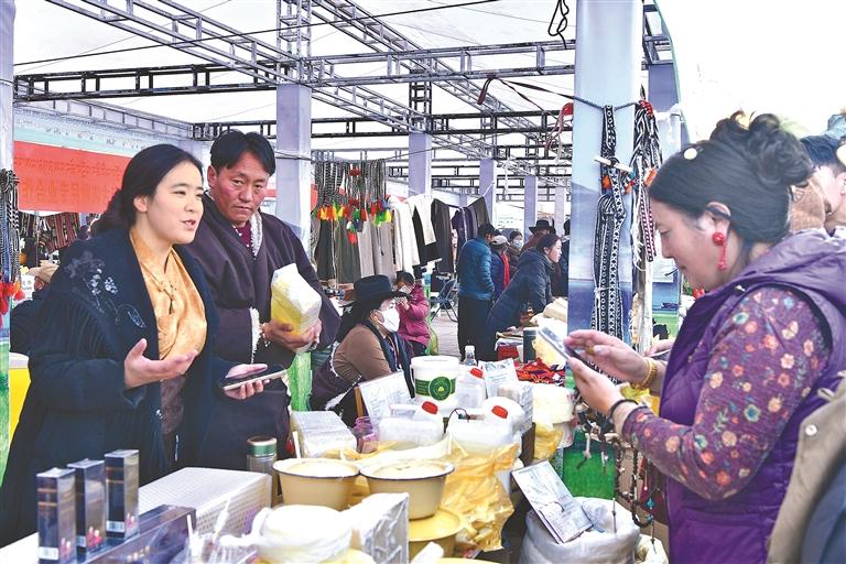 近日,“雪域暖冬 礼遇北城”2025年那曲市中部四县(区)区域协作发展农畜产品展销会,在拉萨市城关区北城新天地广场举行。本次展销会来自那曲市中部四县(区)的多家企业和合作社参展,展销产品包括家畜产品,优质牛羊肉、新鲜乳制品以及独特的地方手工艺品,吸引了众多市民前来选购。