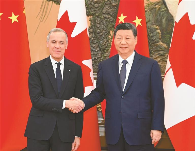 习近平指出,去年10月,我们在韩国庆州会见,开启了中加关系转圜向好的新局面。双方就恢复和重启各领域合作深入探讨,取得积极成果。中加关系健康稳定发展符合两国共同利益,也有利于世界和平稳定和发展繁荣。双方要本着对历史、对人民、对世界负责任的态度,推进构建中加新型战略伙伴关系,推动中加关系迈入健康、稳定、可持续的发展轨道,更好造福两国人民。