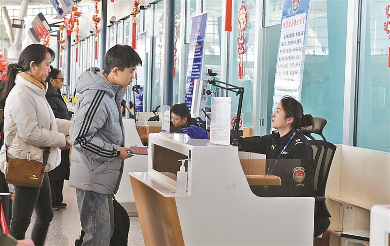 图为工作人员为旅客办理登机手续。本报记者 曲珍 摄