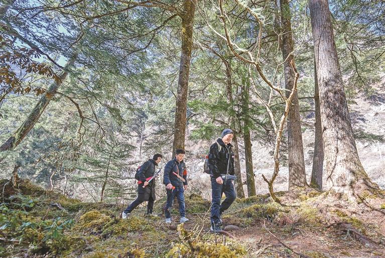 护边员们在丛林里巡逻。新华社记者 丁增尼达 摄