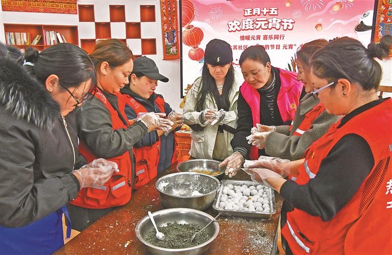 图为拉萨市城关区吉崩岗街道热木其社区群众和社区工作人员正在包汤圆。本报记者 旦增兰泽 摄