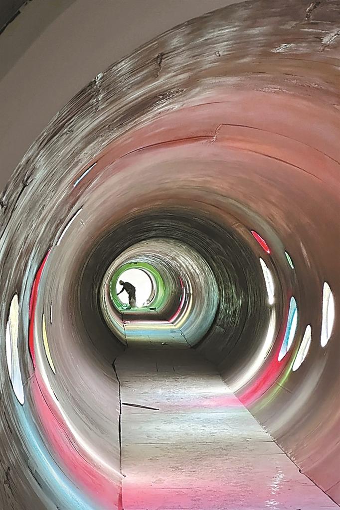 图为西藏美术馆内的彩色管道艺术装置。