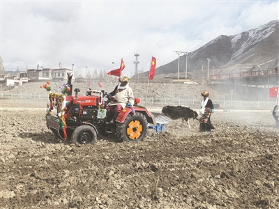 上午11时许,村委会负责人为现场群众敬献哈达与“切玛”,送上新春农耕的美好祝福。伴随着现代化农机的阵阵轰鸣,10余台拖拉机有序驶入田间开展耕种,田野间一派热火朝天的繁忙景象。铁犁翻开沉睡一冬的沃土,一粒粒希望的种子被播撒进大地。仪式现场,村民们还跳起欢快的锅庄舞,以淳朴的方式祈愿风调雨顺、五谷丰登。