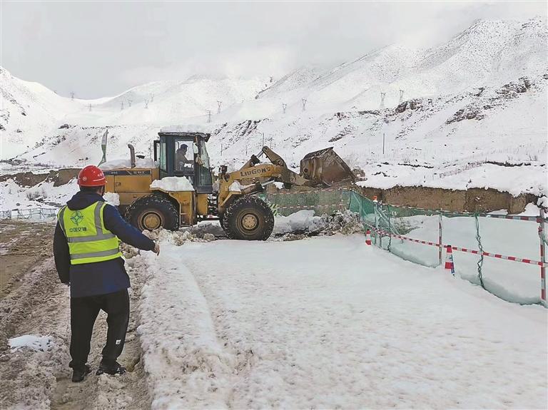 中交养护工程公司项目组启动应急响应,组织人员冒雪养护道路。本报记者 王莉 摄