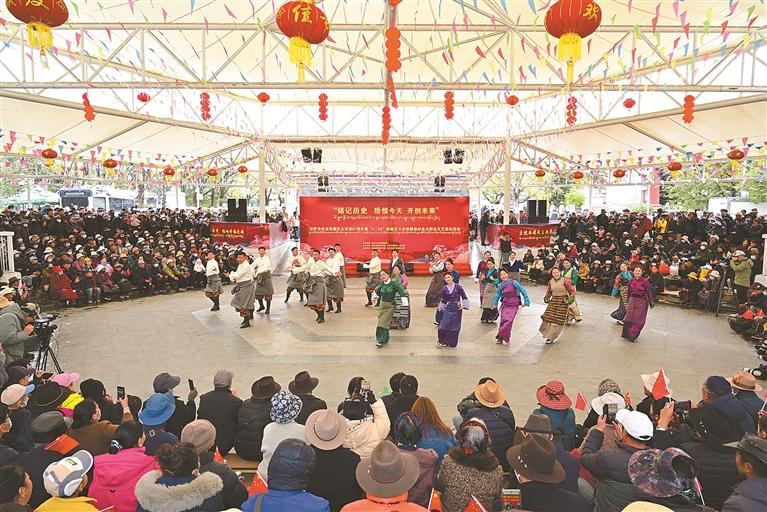 3月28日,“铭记历史 珍惜今天 开创未来”——拉萨市纪念西藏民主改革67周年暨“3·28”西藏百万农奴解放纪念日群众文艺演出活动在宗角禄康公园举行。图为演出现场。本报记者 次仁平措 摄