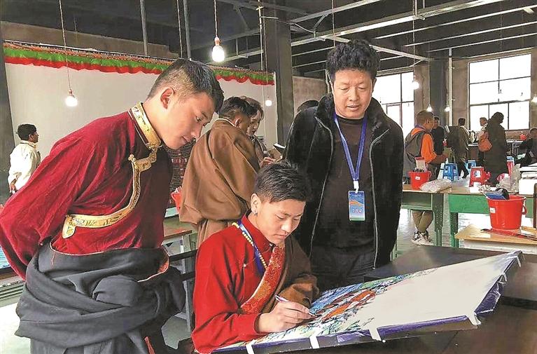 图为该县相关部门技术人员在当地产业园区对群众进行技能培训。本报记者 白玛泽旺 摄