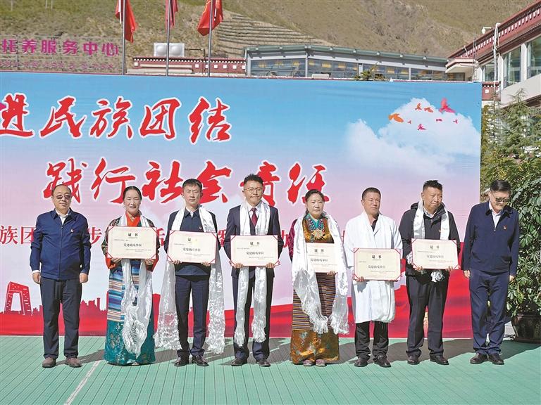 自治区残疾人托养中心为包括交通银行西藏分行在内的党建助残单位颁发证书。
