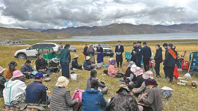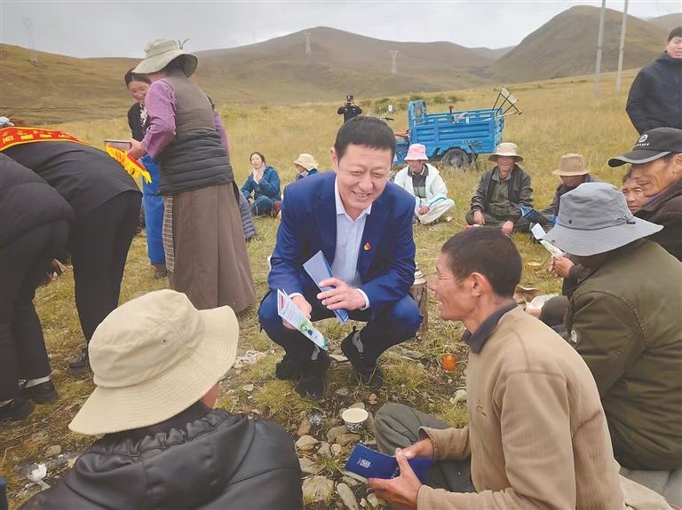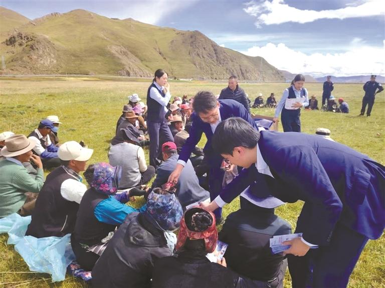 交通银行西藏分行工作人员走进浪卡子县,为当地村民讲解金融知识。
