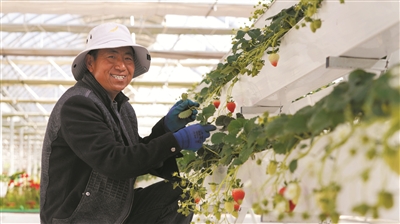 在他的指导下,来自塔巴村的村民次仁曲珍小心地摘除一株草莓植株上发黄的老叶,又仔细地拔去根部杂草。“如今能在家门口的温室大棚里工作,不仅能照顾家里的老小,每月还有4000多元的收入。更重要的是,能学到实实在在的现代农业技术,真的非常开心。”次仁曲珍说。