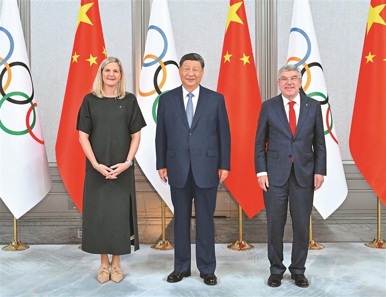 习近平指出,奥林匹克精神是人类文明的重要内容,寄托着各国人民对建设更美好世界的期盼,同中方推动构建人类命运共同体的愿景高度契合。中国始终是奥林匹克精神的坚定践行者、维护者、传播者。近年来,中国同国际奥委会在推进体育事业中相互支持,携手办成了很多大事好事。年初我们在冰天雪地的哈尔滨共襄亚冬盛会,今天又在温暖如春的广州共赴全运之约,体现了中国同国际奥委会之间的友好密切关系。中方愿持续深化双方高水平合作,统筹推进体育强国建设和奥林匹克运动发展,为全球体育治理贡献更多智慧和力量,为构建人类命运共同体作出更大贡献。