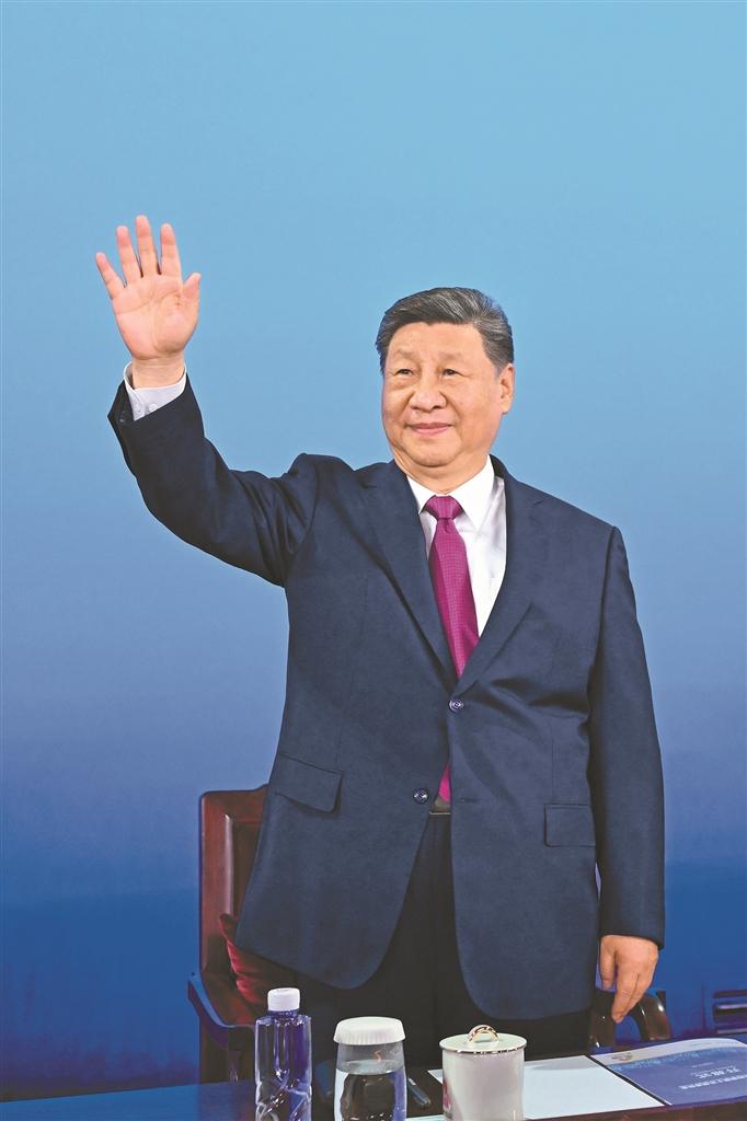 11月9日晚,中共中央总书记、国家主席、中央军委主席习近平在广东省广州市出席中华人民共和国第十五届运动会开幕式并宣布运动会开幕。这是习近平在主席台上向大家挥手致意。新华社记者 燕雁 摄